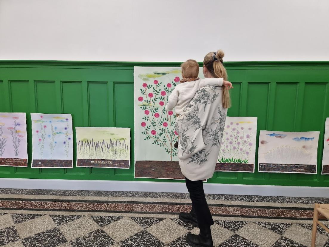 The tour is led by Malou Solfjeld — mother, art historian and the founder of Kunst på Barsel. For several years, Kunst på Barsel has attracted full houses with guided tours at museums and art institutions, specially tailored to parents on parental leave.